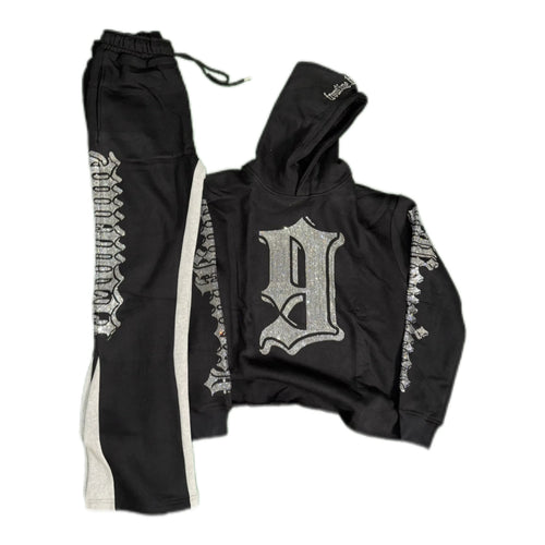 FNINE FLARED RHINESTONE SWEATSUIT
